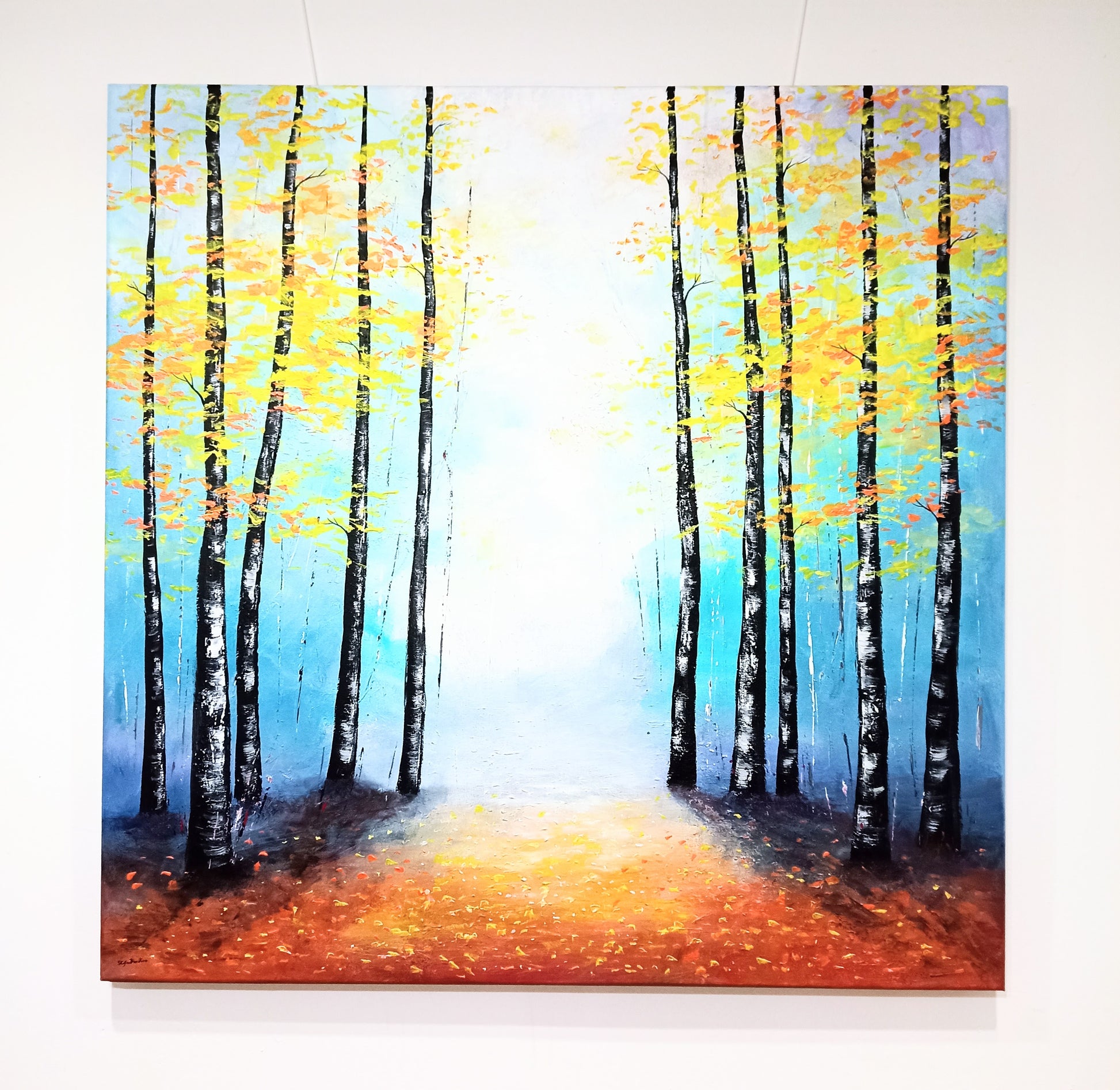 Landscape acrylic on canvas measuring 90cm x 90cm. Painting by Sarah Featherstone.