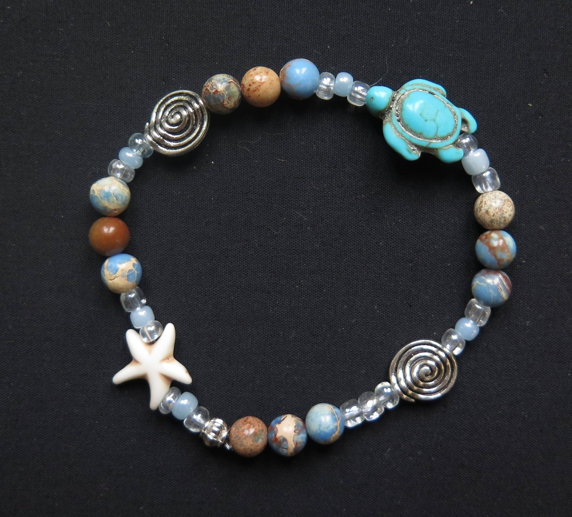 sealife bracelet on 'elastic' with a turtle and starfish.