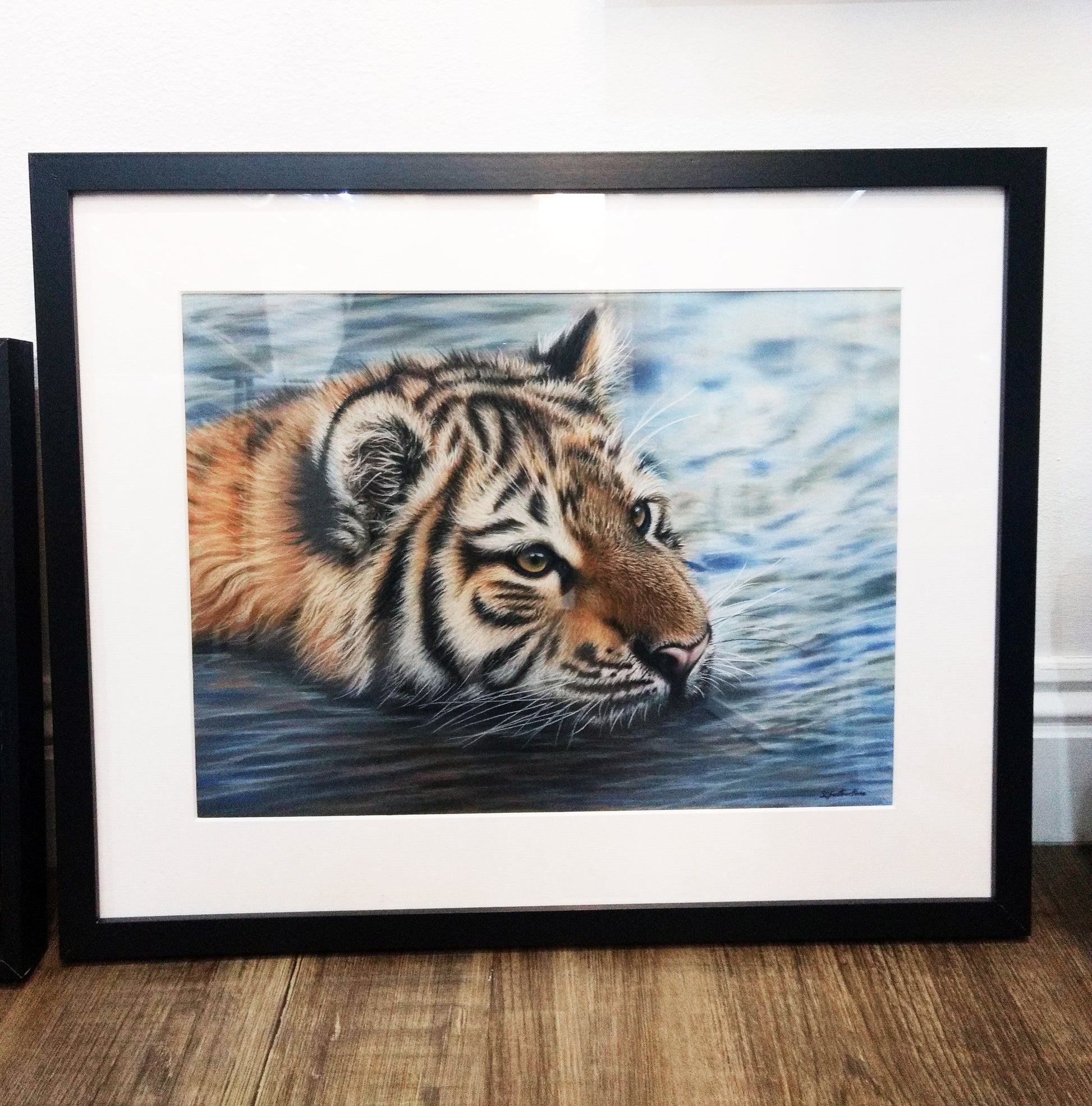 Original Tiger pastel pencil drawing by Sarah Featherstone - Framed.